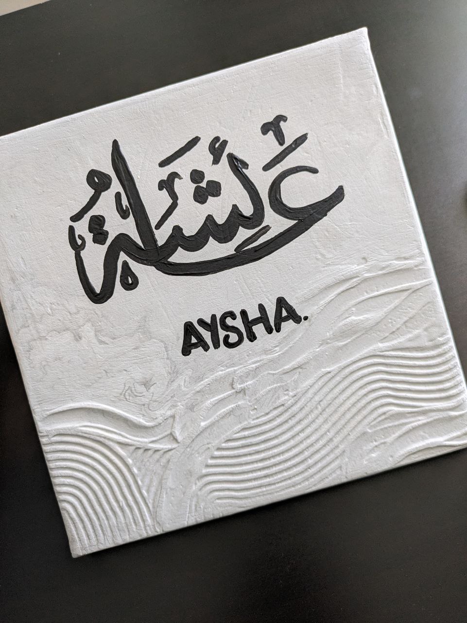 Ajoutez une touche personnelle et sophistiquée à votre décoration intérieure avec ce tableau texturé en nuances de gris, orné d’un prénom en calligraphie noire élégante. Parfait pour personnaliser votre espace, ce tableau combine la modernité de ses textures avec la délicatesse de l’art calligraphique.- *Dimensions* : 50 cm x 70 cm